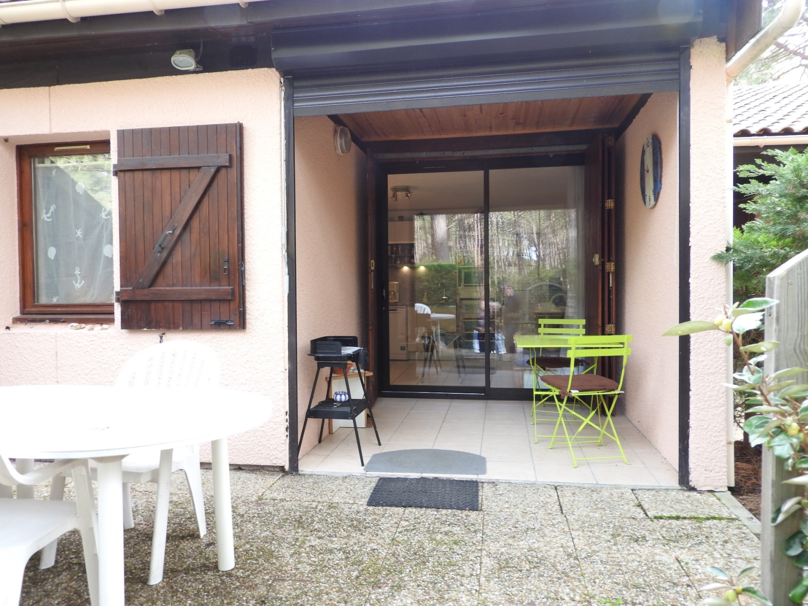 Lacanau ocean (33680)A vendre maison dans une résidence en parfait état de 30 m² comprenant 1 chambre, un séjour avec kitchenette, une banquette avec 2 tis tiroirs, une douche avec WC, terrasse vue sur la forêt, un cellier pour les vélos