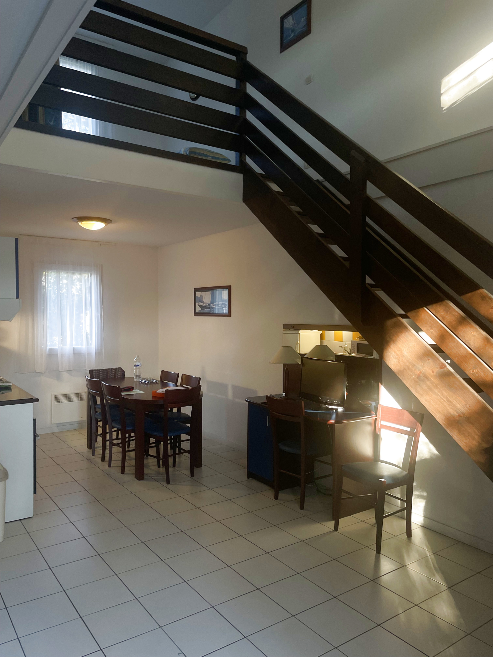 A l’étage, une chambre ouverte sur le séjour et deux autres chambres et une salle de douche.