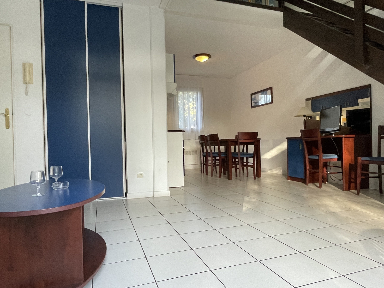 Il y a un cellier d’une surface de 10 m² pour le vélos ou planches, une parcelle de terrain privative de 150 m² environ.