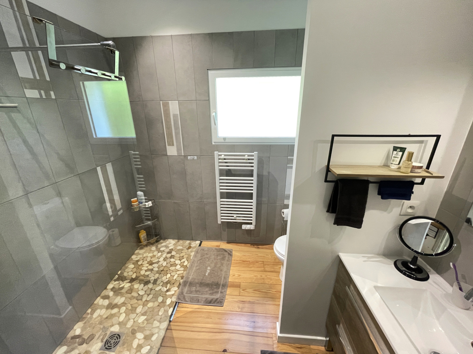 Comprenant 5 belles et grandes chambres, un salon séjour cuisine avec une cheminée, 2 terrasses couvertes de 15 m², 2 salles de douche, 2 WC