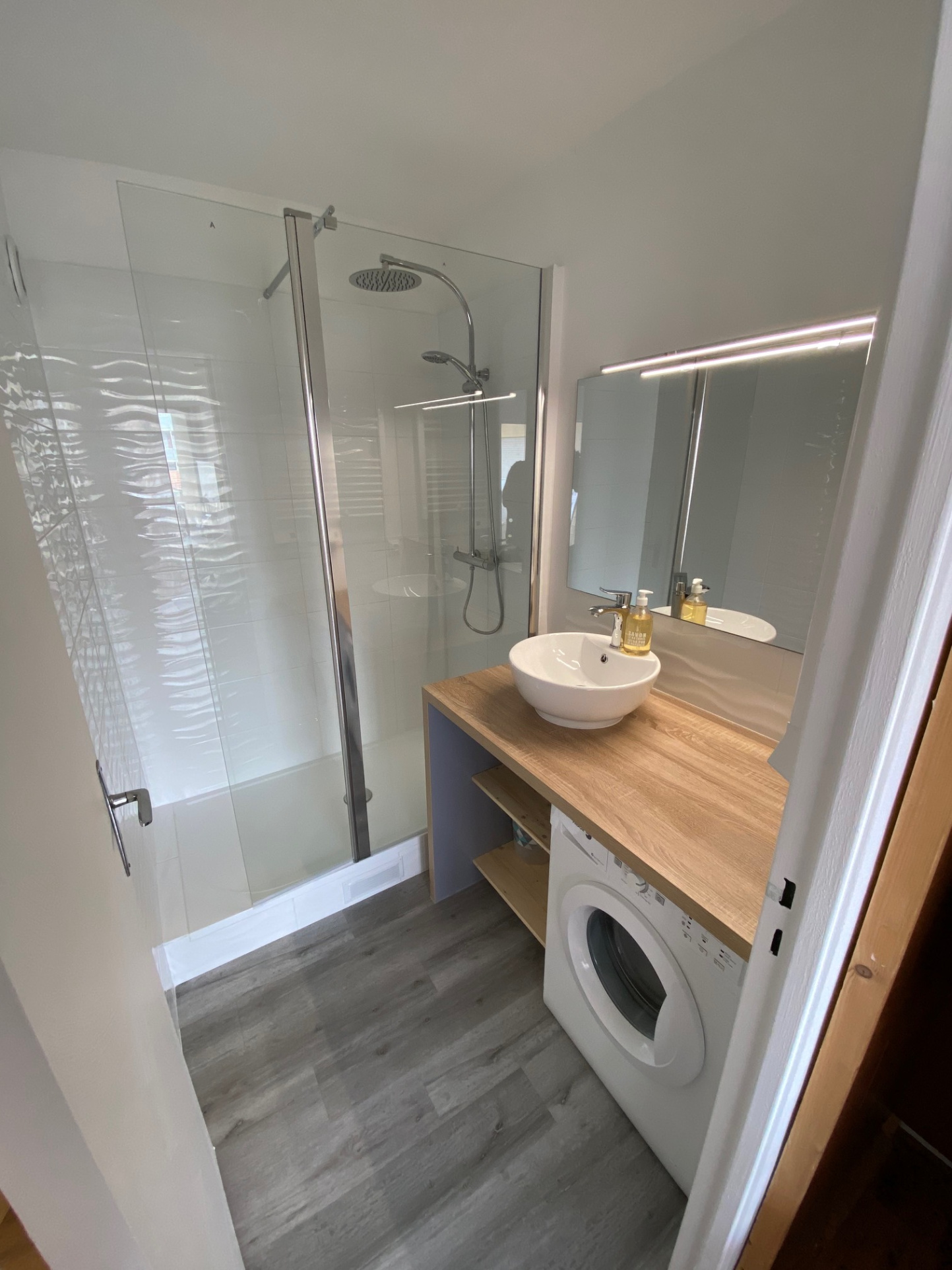 une douche toute refaite avec son WC fermé