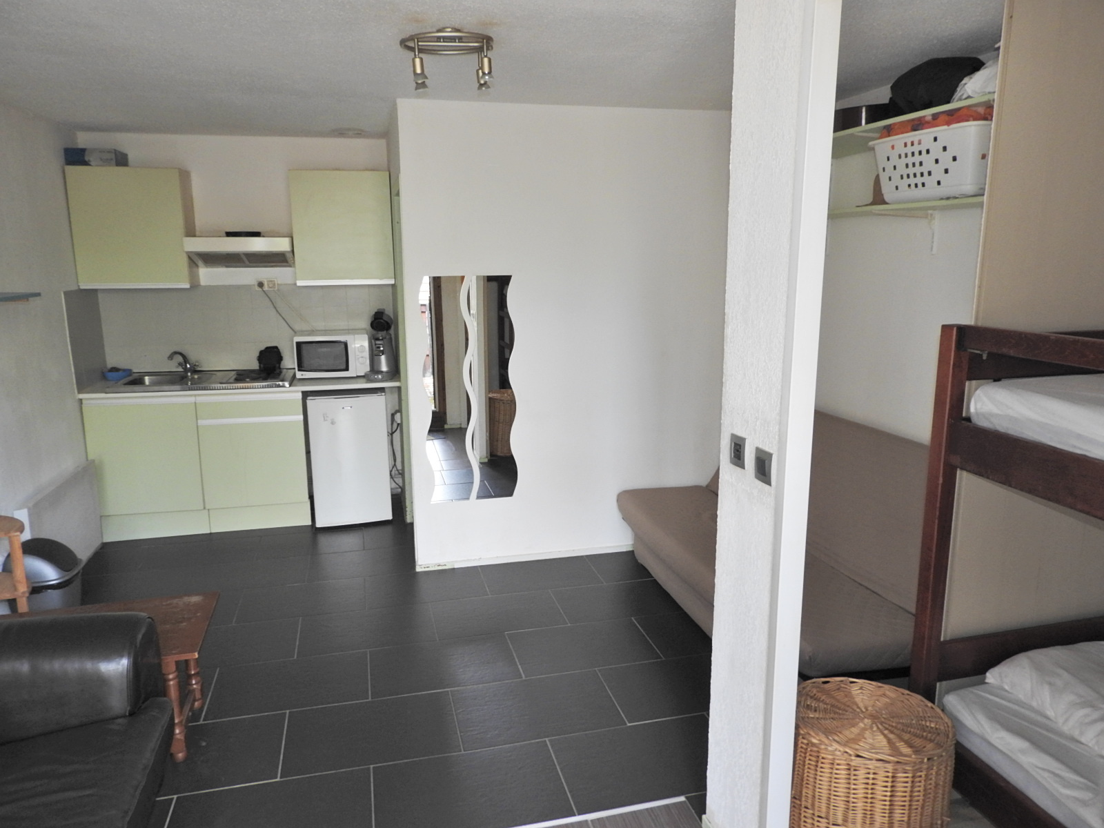 Lacanau ocean (33680)VENDU PAR L'AGENCE studio situé dans la forêt, une chambre cabine, séjour, kitchenette, douche, terrasse ensoleillée sans vis à vis Cellier pour les vélos, orienté une vue vers la verdure, Bilan DPE C, peu de charges de copropriété 30 euros par mois, parking privé, plage à 1,2 km. Vendu meublé -