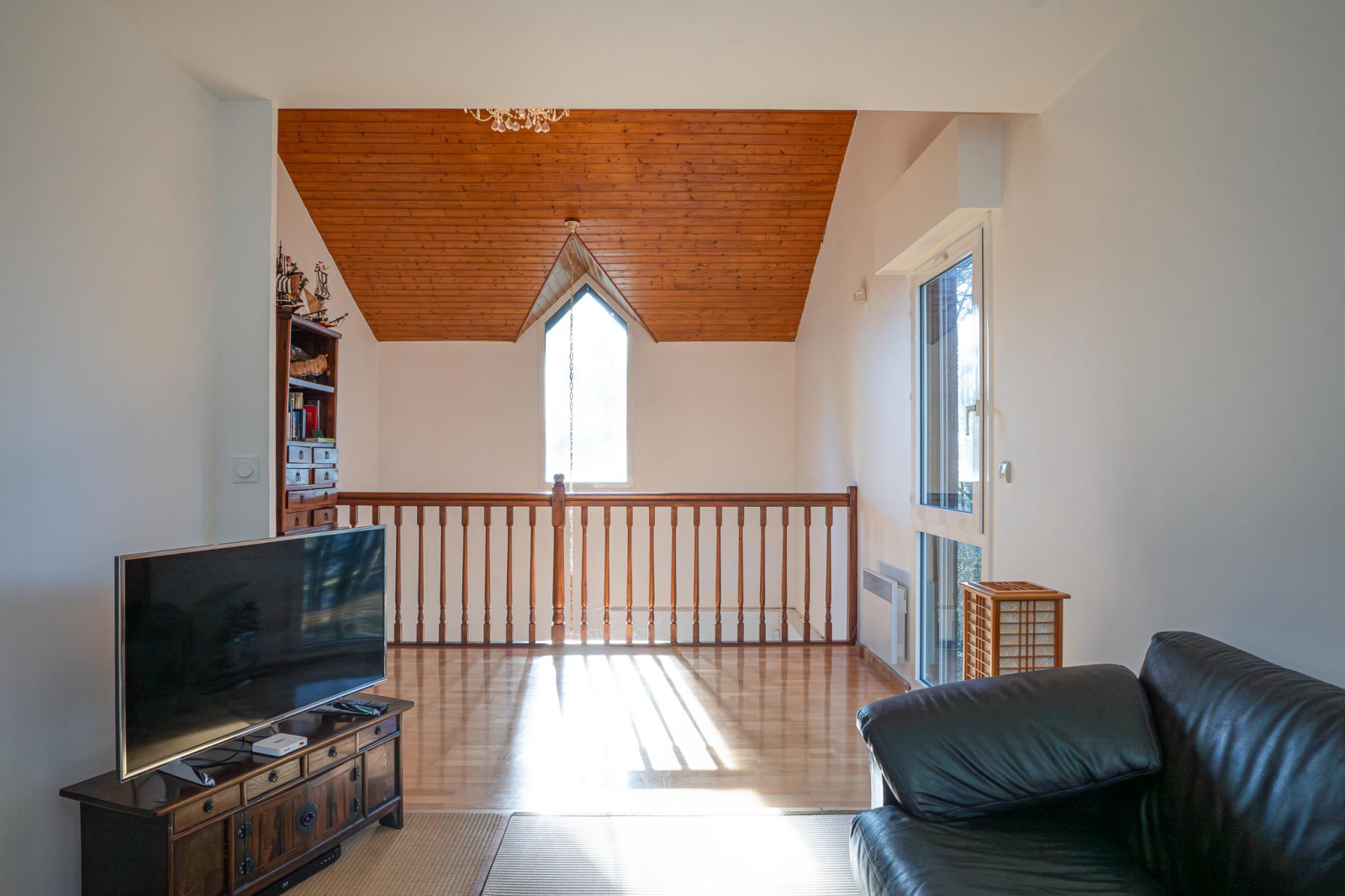 Concernant l'étage il dispose d'une chambre parentale avec sa salle de bains et WC, une seconde chambre, et un coin nuit ou bureau donnant sur une mezzanine, une douche avec WC desservant les deux autres chambres.