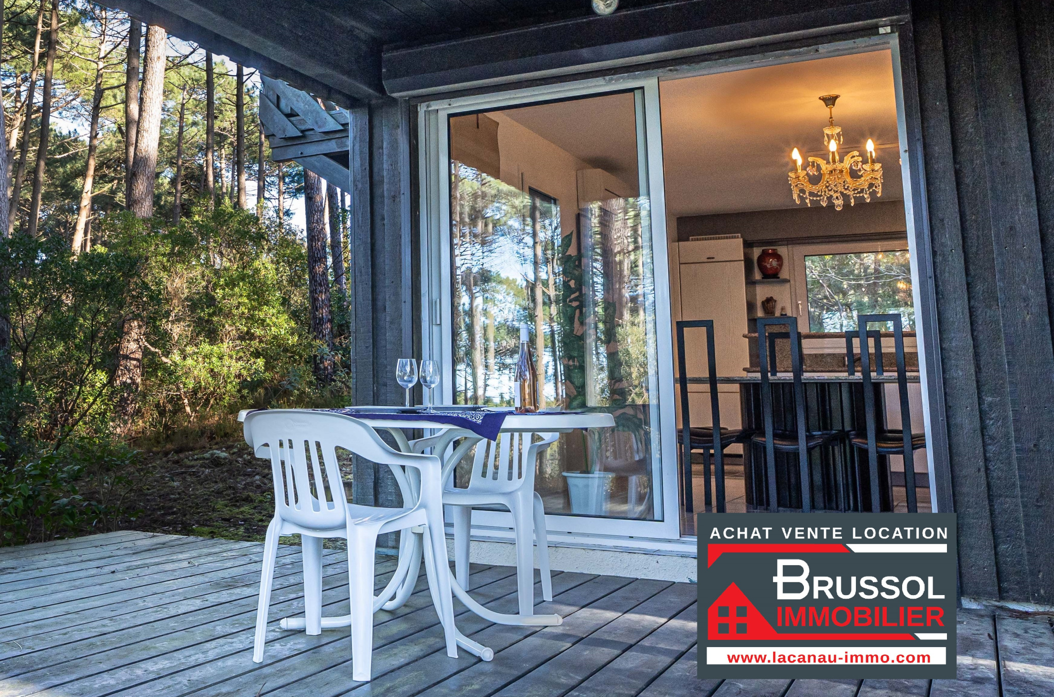 Lacanau Golf maison d'architecte vente 3 chambres grand terrain Chalet bois Agence Brussol Gironde