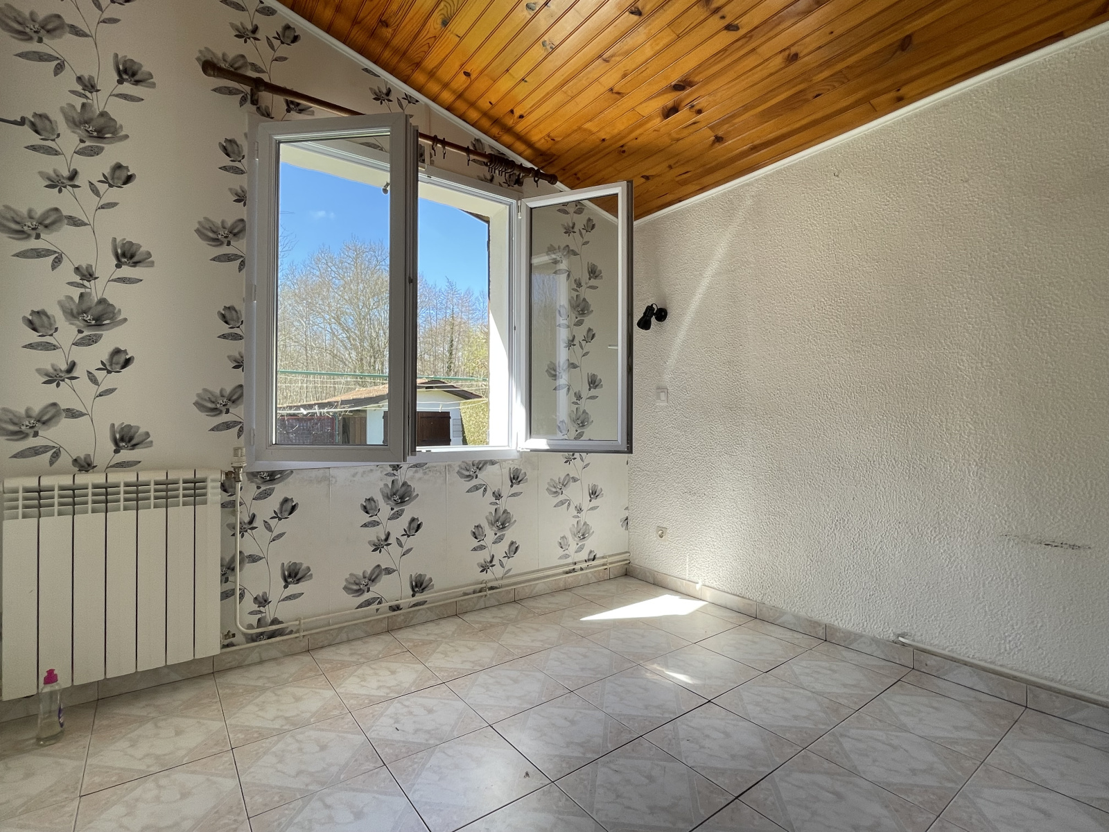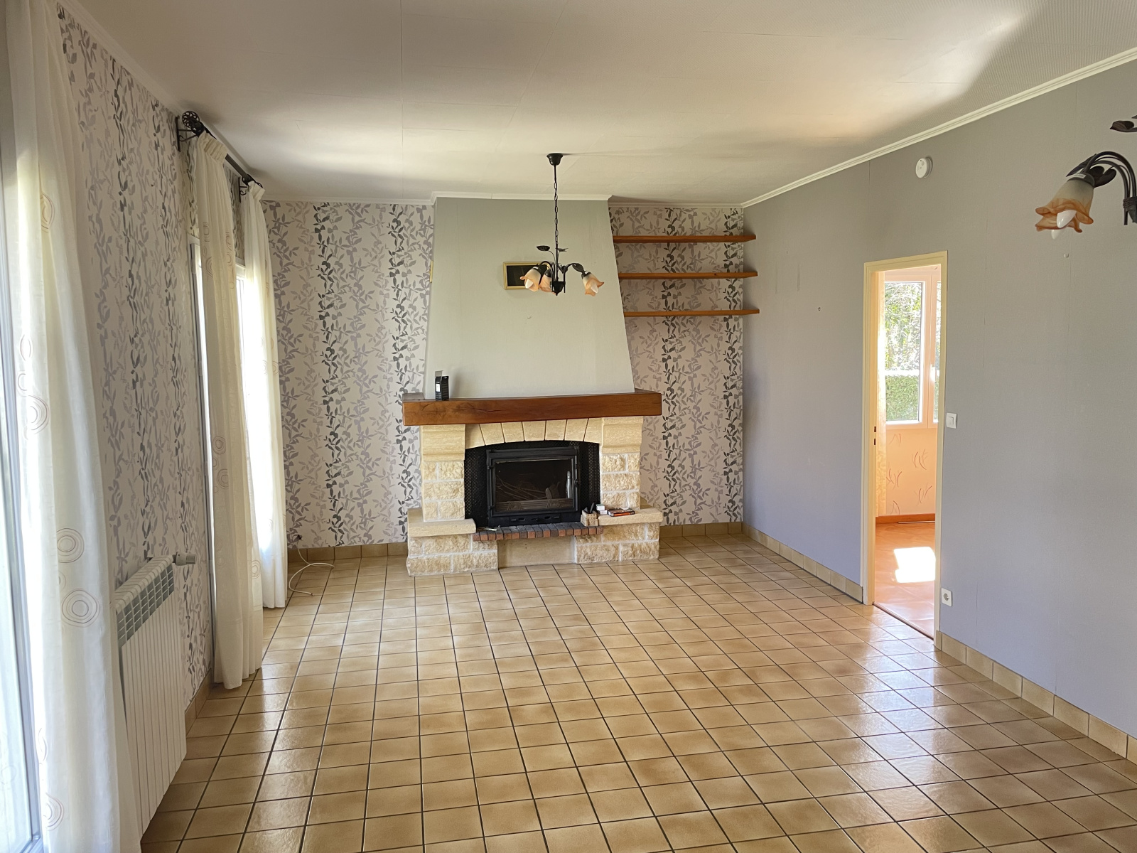 comprenant : un salon-séjour avec une cheminée, une chambre, une cuisine à aménager, une salle de douche, une chambre et un bureau.