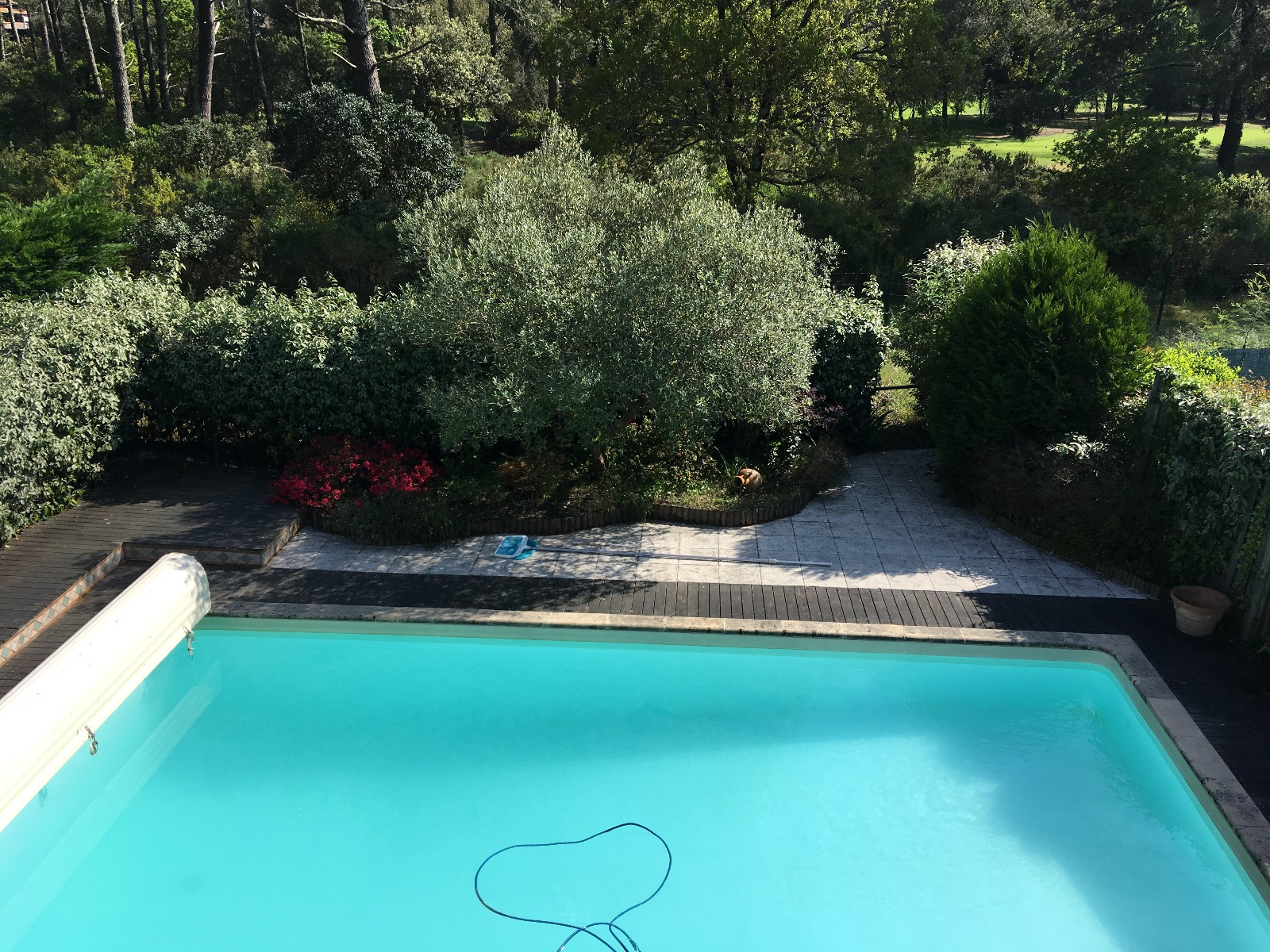 PISCINE COUVERTE AVEC UN VOLET RIGIDE SANS VIS A VIS GRANDE TERRASSE AUTOUR