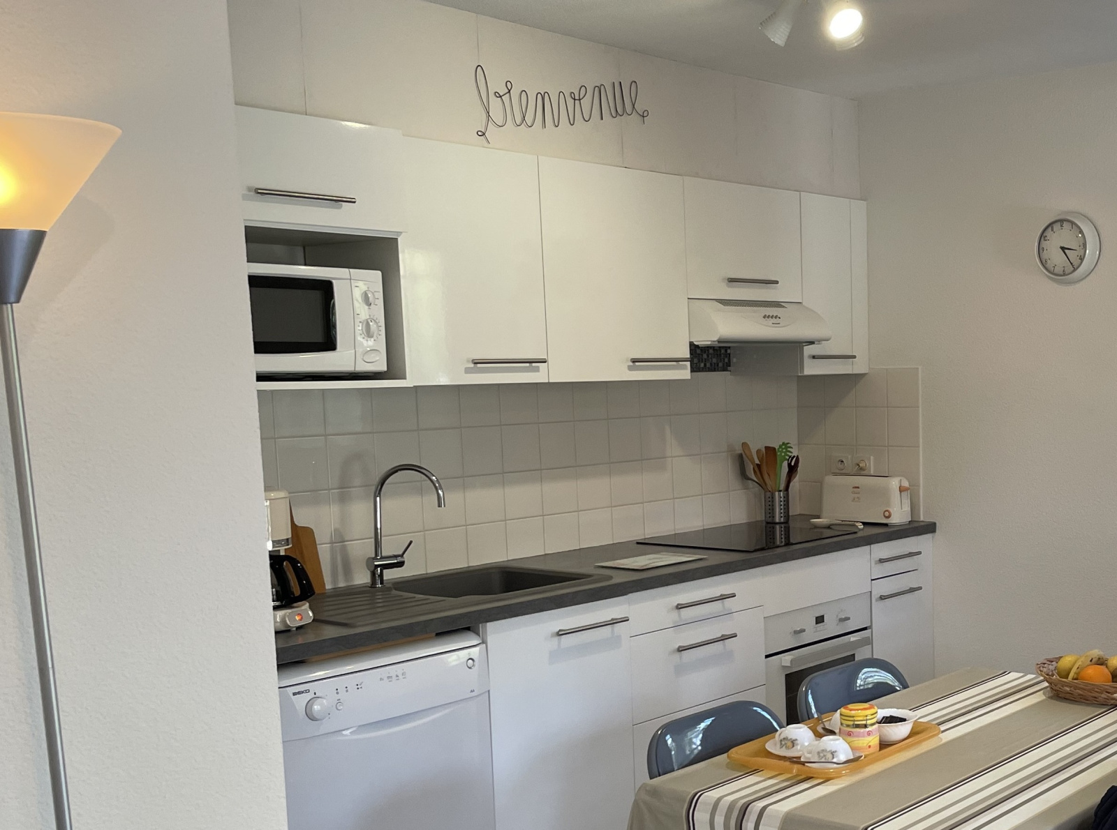 Un beau séjour lumineux avec cuisine intégrée