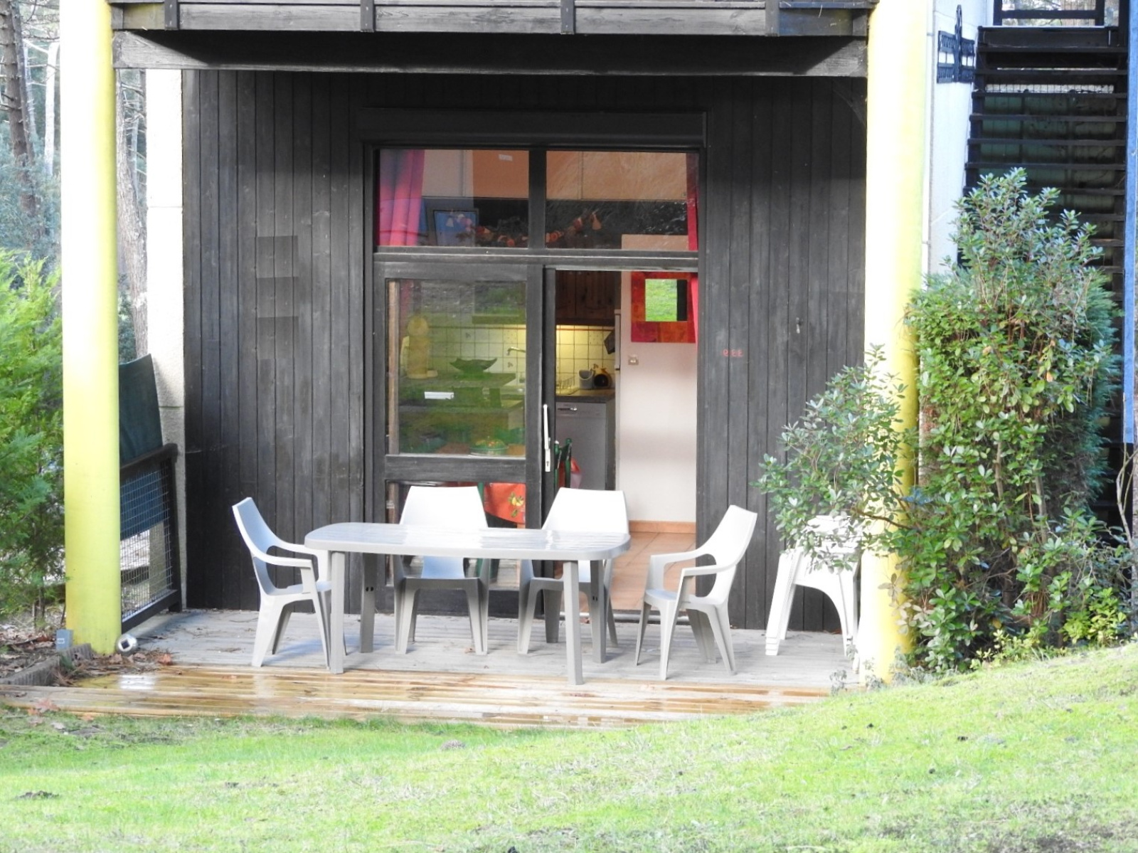 LACANAU OCEAN APPARTEMENT de 51 m² CLAIR ET LUMINEUX, comprenant : une entrée, une chambre et une chambre cabine, une douche, un WC séparé, sur un demi niveau un séjour avec une kitchenette, donnant sur une belle terrasse en bois de 10 m² avec une vue vers les espaces verts, un autre demi niveau avec une chambre de 10 m² avec placards et une seconde salle de douche avec WC. Un cellier à l’entrée d’une surface de 5 m², une place de parking privative,